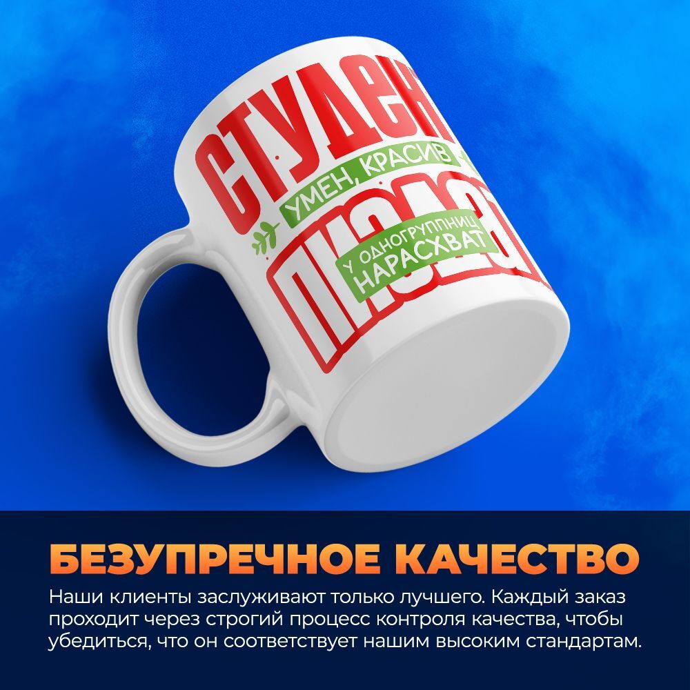 Эта кружка не только практична, но и обладает ярким оформлением, что делает ее отличным подарком на праздник студентов. Качество материала гарантирует долговечность использования, а также легкость в уходе. Она прекрасно подходит как для дома, так и для учебного заведения, позволяя всегда иметь под рукой любимый напиток.