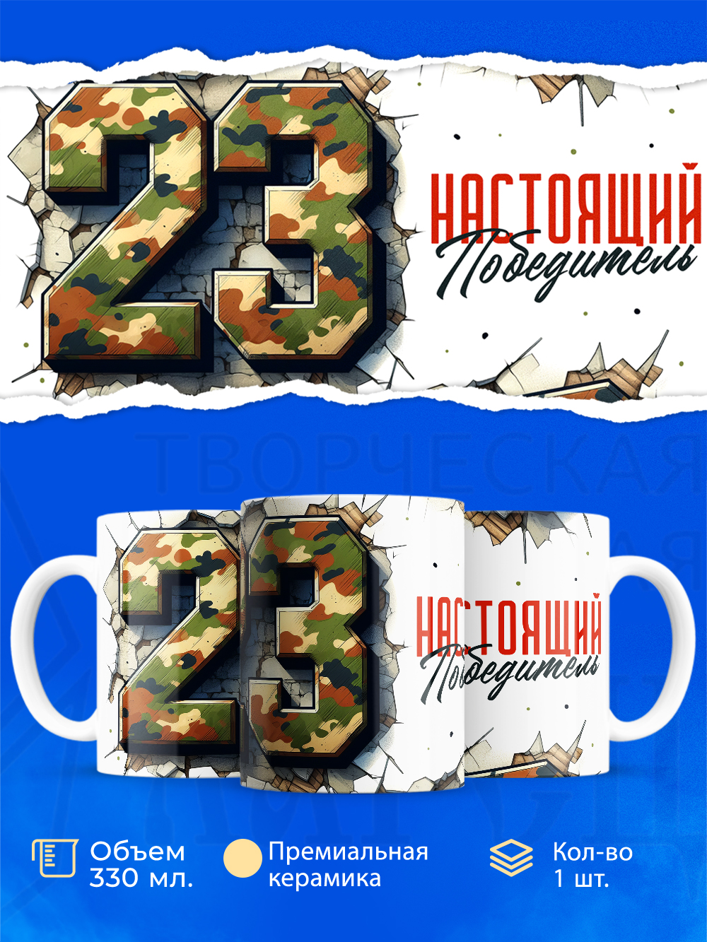 Ищете идеальный подарок на 23 Февраля для мужчины, мальчика или просто друга? Наша яркая и стильная кружка “23 Февраля” станет отличным выбором! Эта прочная и красивая кружка станет не только полезным, но и памятным подарком на День защитника Отечества.