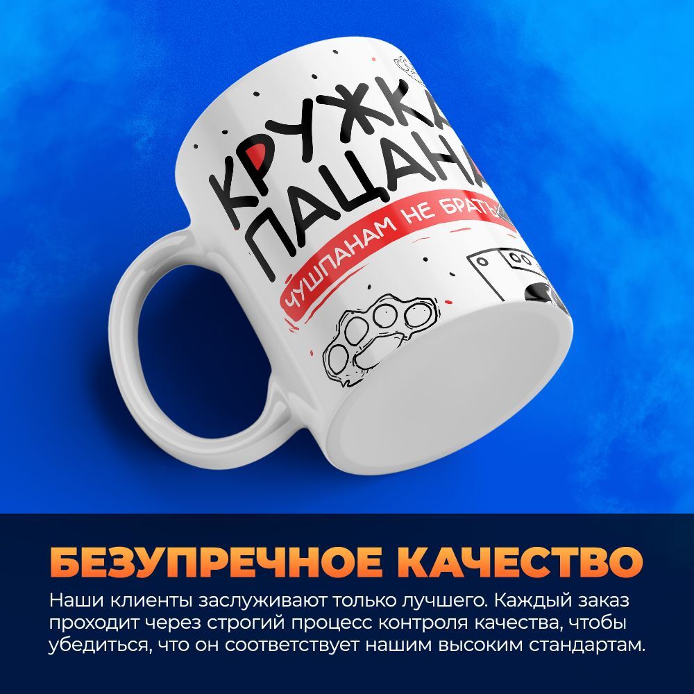 Изготовленная из качественного материала, кружка обладает надежной конструкцией и выдерживает регулярное использование в домашних условиях или на работе. Дизайн кружки отражает актуальные фразы, которые понравятся тем, кто ценит юмор и настоящую пацанскую атмосферу. Вы можете использовать ее как для утреннего кофе, так и для вечернего чая, ведь она отлично подходит для любых напитков.