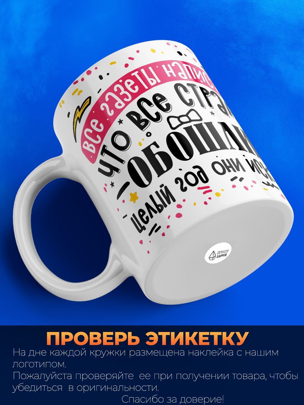 Кружка с принтом от ТМ Ларец - это кружка, которая создана для тех, кто любит необычные подарки и не боится проявлять свою чувственную и юмористическую сторону. Кружка выполнена в белом глянцевом исполнении, с качественным покрытием премиум качества Orca Coating, которое позволяет сохранять яркий принт долгое время, не выцветая и не сколовшись. Дизайн кружки - это знаменитый юмористический стих, который вызовет улыбку и настроение Вашего друга или близкого человека. А эксклюзивный дизайн от ТМ Ларец добавит изюминку и стильность этой кружки.