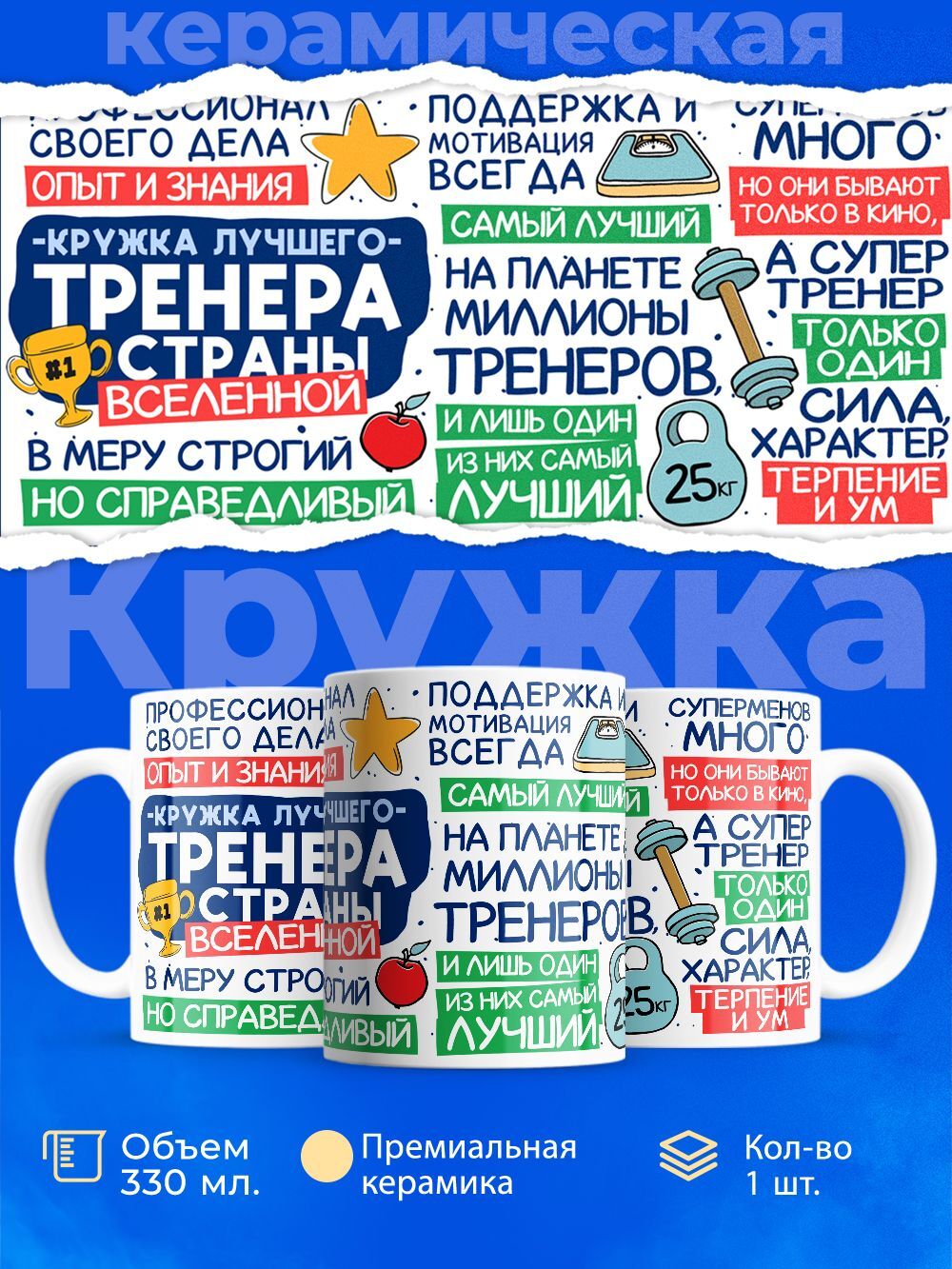 Если вы ищете идеальный подарок для своего тренера, то эта подарочная кружка - именно то, что вам нужно! Стильный дизайн, качественный материал и удобная форма сделают этот предмет настоящим украшением любой кухни или рабочего стола. На кружке изображен логотип футбольной команды, что придает ей особый шарм. Надпись “Лучший тренер” подчеркнет значимость и уважение к вашему наставнику. Не упустите возможность порадовать любимого тренера этим замечательным подарком на 23 февраля!