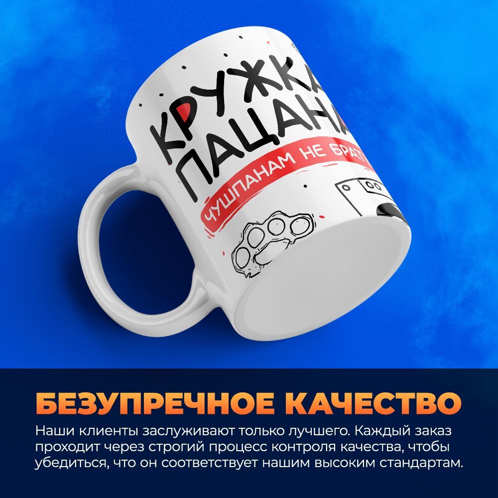 Особенностью данной модели является возможность выбора между двумя вариантами дизайна: “Чушпан” или “Не Чушпан”. Если ваш друг или близкий человек предпочитает более классический стиль, то ему подойдет кружка “Не Чушпан”, а если он любит яркие и оригинальные вещи, то “Чушпан”.