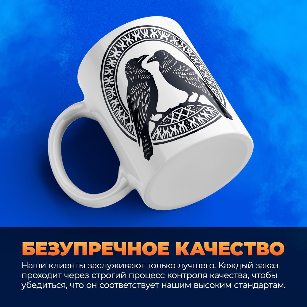 Погрузитесь в мир скандинавской мифологии с нашей уникальной керамической кружкой, украшенной ярким принтом Хугина и Мунина. Эта кружка не только добавит магии в ваше утро, но и станет отличным подарком для любителей мифов и легенд.